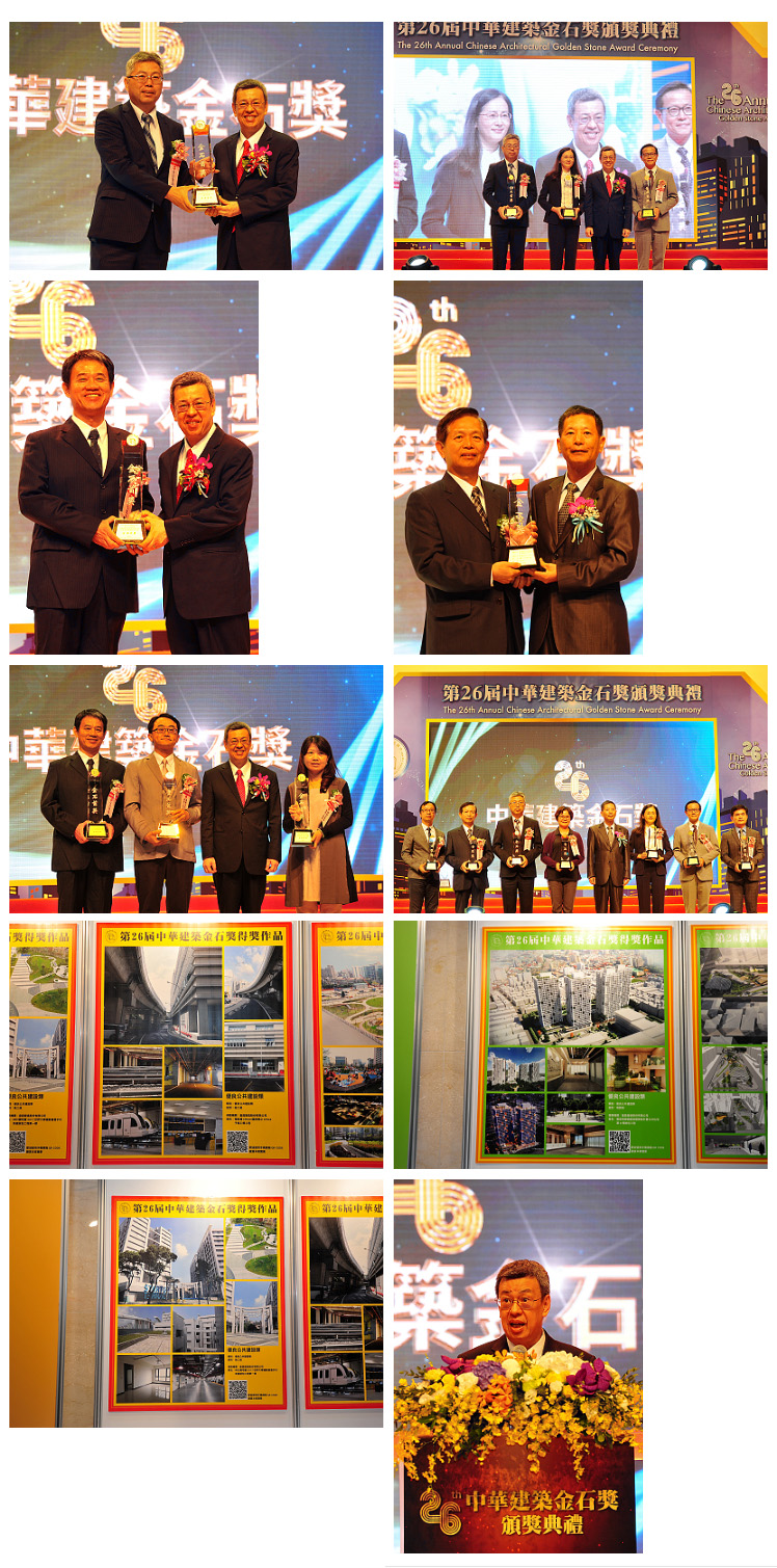 有建築界奧斯卡之稱的台灣建築界年度盛事-「第26屆中華建築金石獎」頒獎典禮於10月4日在中油大樓國光會議廳盛大舉行,