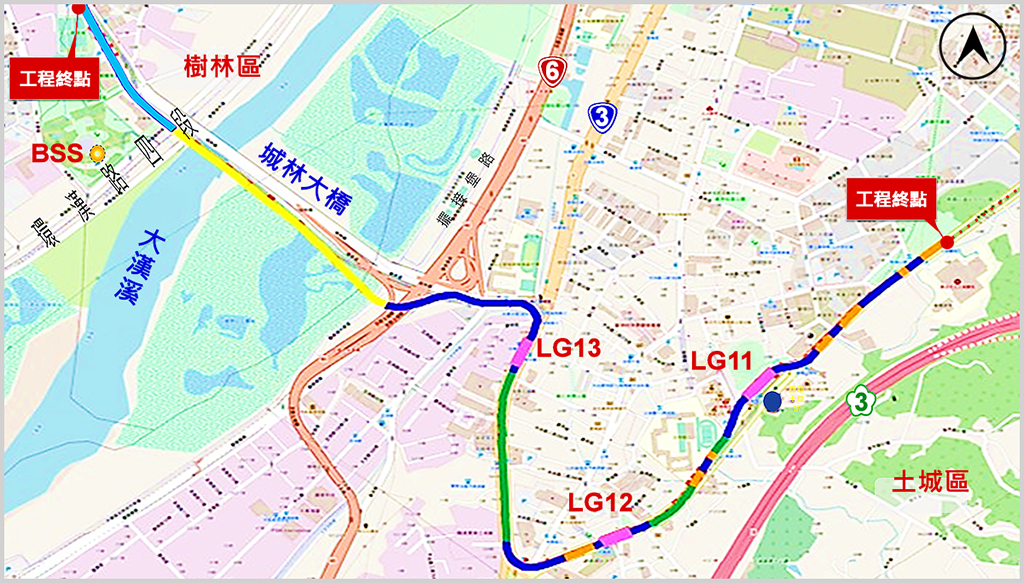 工程內容包含全長約3.82公里之高架橋結構、三座地上車站(LG11、LG12、LG13)及一座BSS主變電站。契約工期為2,770日曆天,預計於114年12月19日正式開工,完工期限至122年7月19日止。
